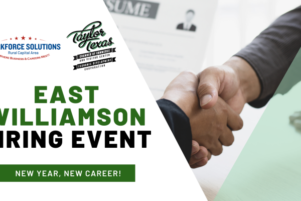A new year brings fresh possibilities—make 2026 your year for growth. Join Workforce Solutions Rural Capital Area at the East Williamson County Hiring Event, where employers, job seekers, and community partners come together to support economic and workforce development in our region.
