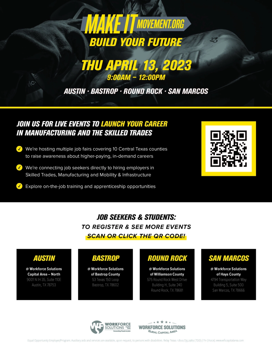 Join us for a hiring experience across Central Texas on April 13 to launch your career in manufacturing and skilled trades: