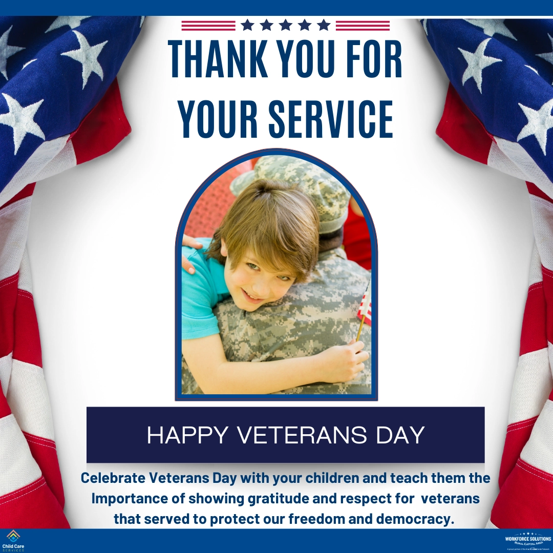 Veterans Day is a special holiday to honor all the men and women who have served in the United States military to protect our freedom and democracy. It is celebrated every year on November 11th. Workforce Solutions Rural Capital Area gives our gratitude and respect to veterans for protecting our freedom and democracy.