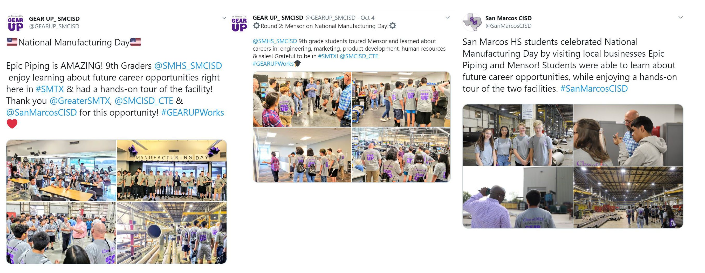 In Hays County, our partners at the Greater San Marcos Partnership (GSMP) and the Greater San Marcos Manufacturers Association, worked with Hays Consolidated ISD and San Marcos Consolidated ISD to create Manufacturing Day immersion experiences for students in the region by helping them visit with local manufacturers.