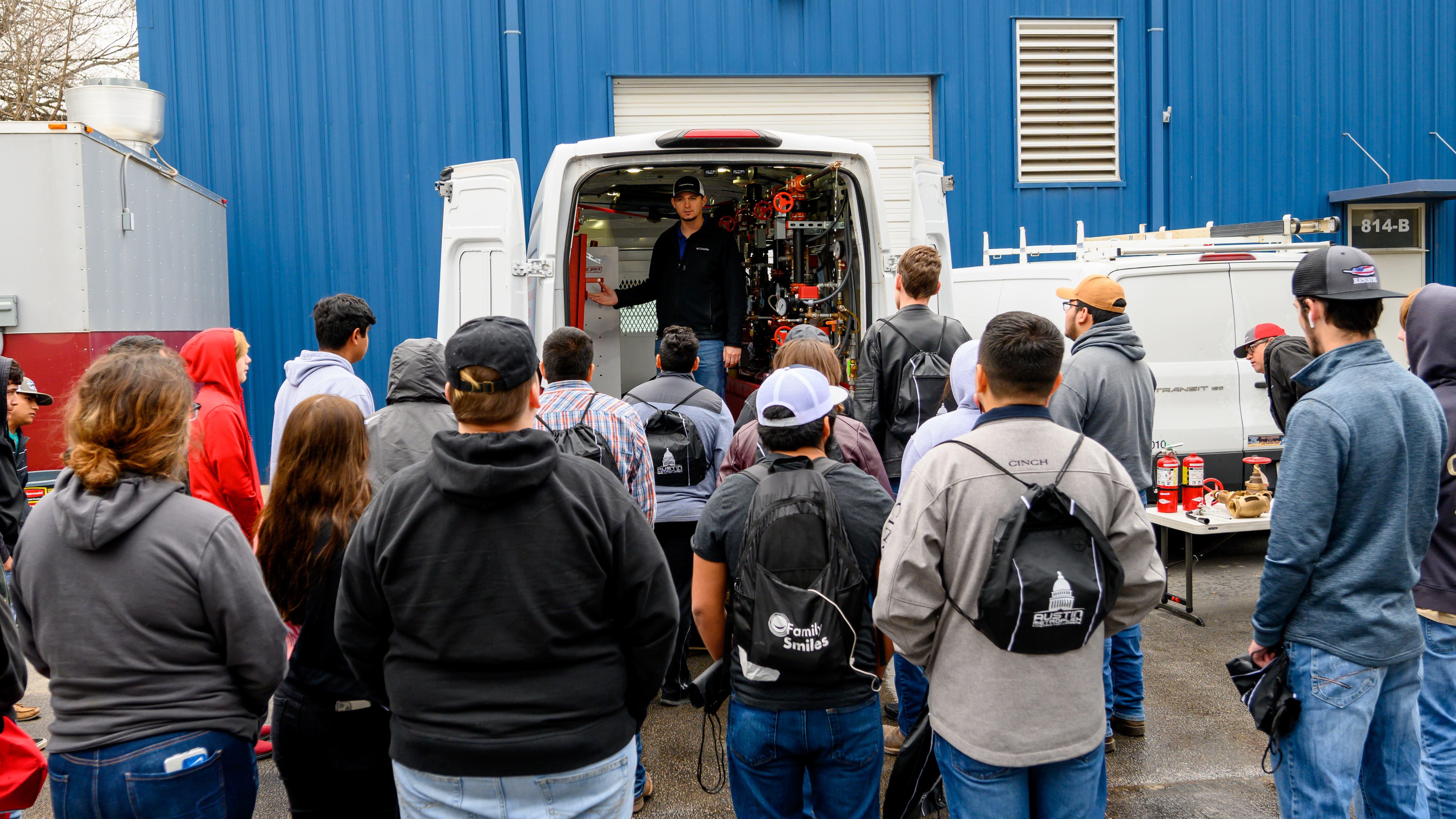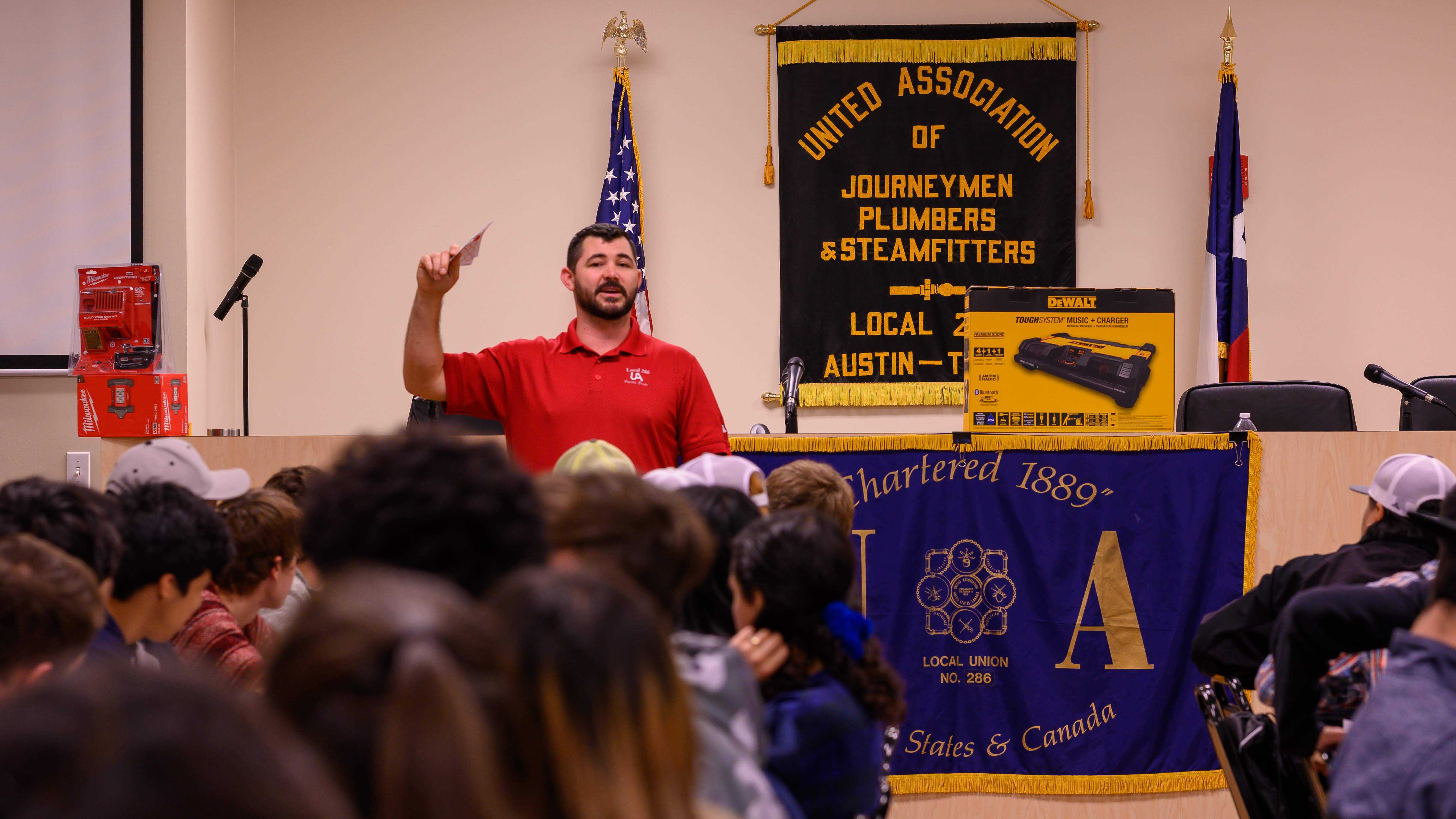 The students explored career opportunities in multiple industries and heard from skilled trades professionals from the International Brotherhood of Electrical Workers Local 520, the Sheet Metal Workers International Association LU 67, and Northstar Fire Protection of Texas.