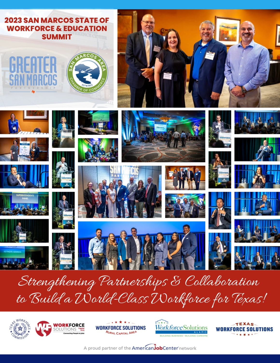 Thanks to the San Marcos Area Chamber of Commerce and the Greater San Marcos Partnership for inviting our CEO Paul Fletcher, along with Workforce Solutions Capital Area CEO Tamara Atkinson, and Workforce Solutions Alamo CEO Adrian Lopez, to discuss their Texas Talent & Economic Growth Project, at the 2023 State of Workforce & Education Summit in San Marcos.
