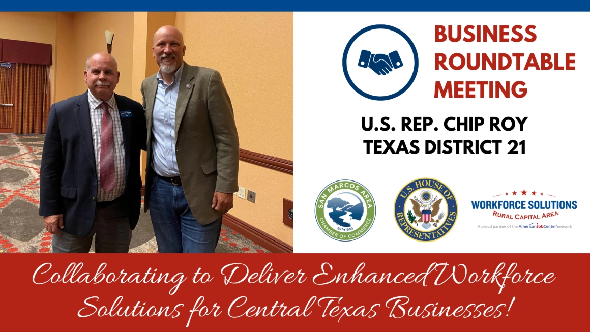 Your WSRCA team joined with business leaders from San Marcos for a roundtable discussion with U.S. Rep. Chip Roy, Texas District 21, at the City of San Marcos Conference Center hosted by the San Marcos Area Chamber of Commerce.