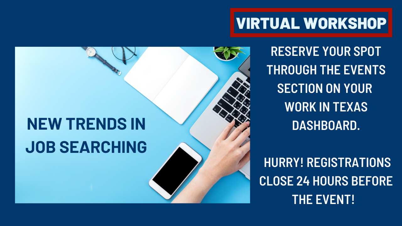 To register for the workshop: Sign-in to www.workintexas.com > My Dashboard > Current Month's Events > Find the session you wish to attend