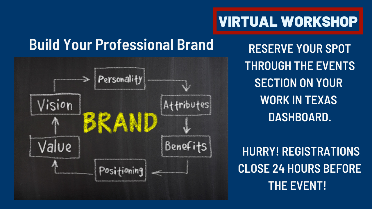 To register for the workshop: Sign-in to www.workintexas.com > My Dashboard > Current Month's Events > Find the session you wish to attend.