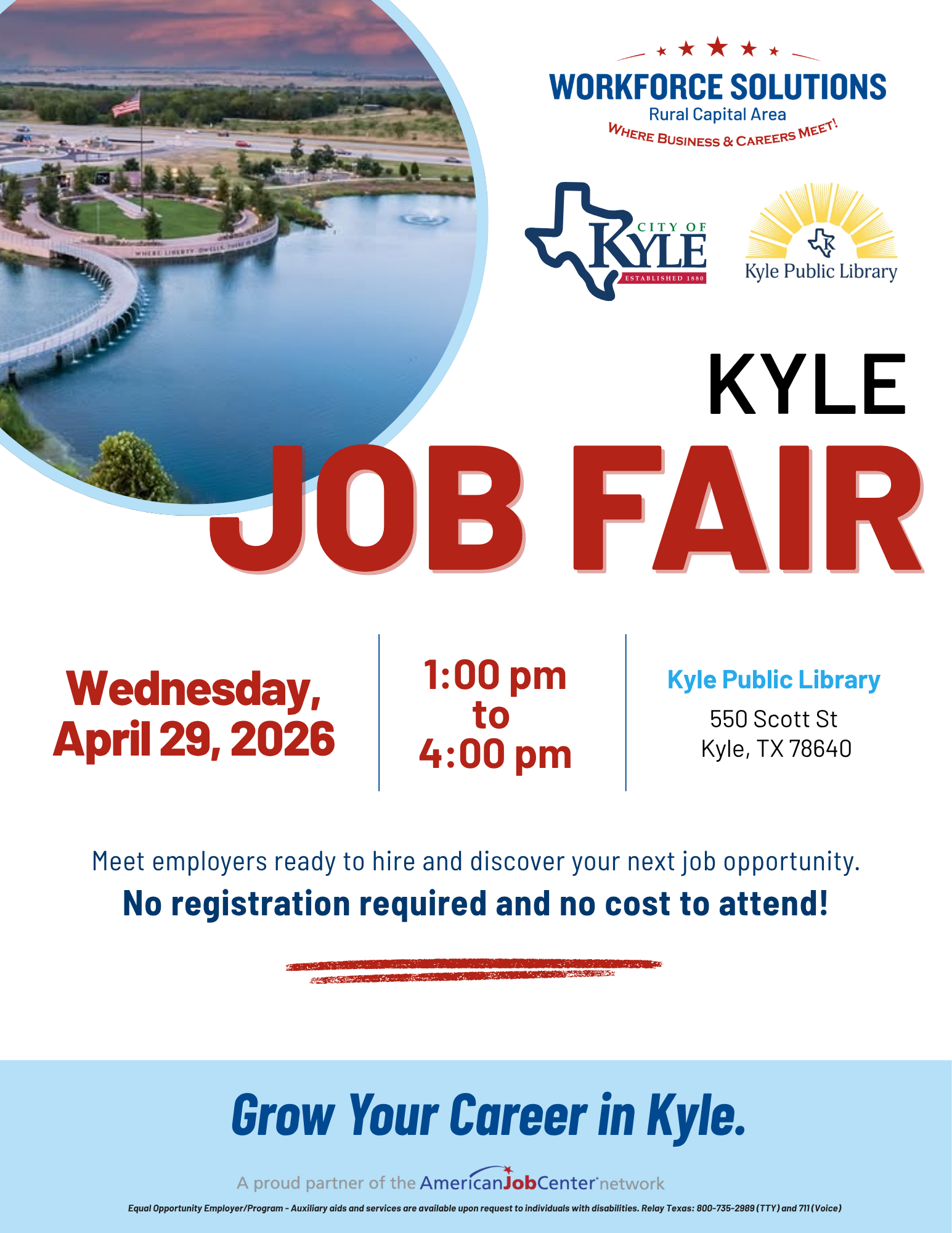 Workforce Solutions Rural Capital Area, in partnership with the City of Kyle, TX and the Kyle Public Library, invites you to connect with local employers and explore new opportunities close to home.