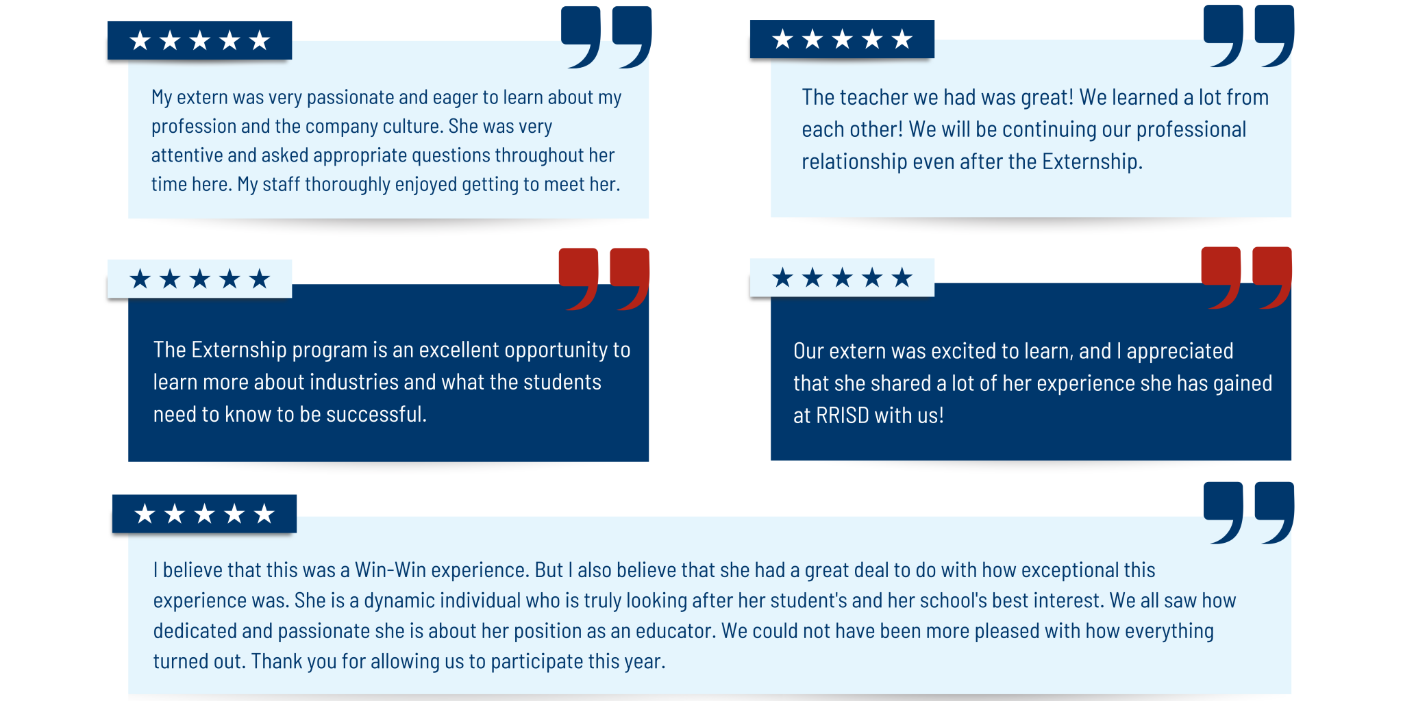 After matches are made, the Chambers and ISDs work with the businesses and teachers to individualize each externship. During the five days of interaction in the workplace, the teachers develop strategies to integrate, not only job-based learning for career content, but also essential skills into daily curriculum for students.